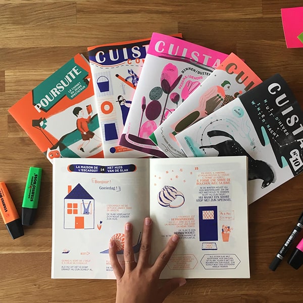 Le collectif Cuistax imprime et auto-édite des images selon des procédés graphiques singuliers. Depuis sa création en 2013, il publie aussi un fameux fanzine bilingue pour enfants ciblant une thématique différente à chaque parution.